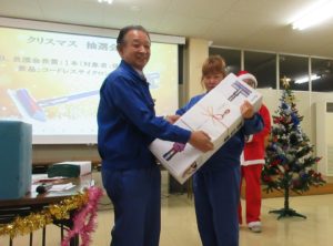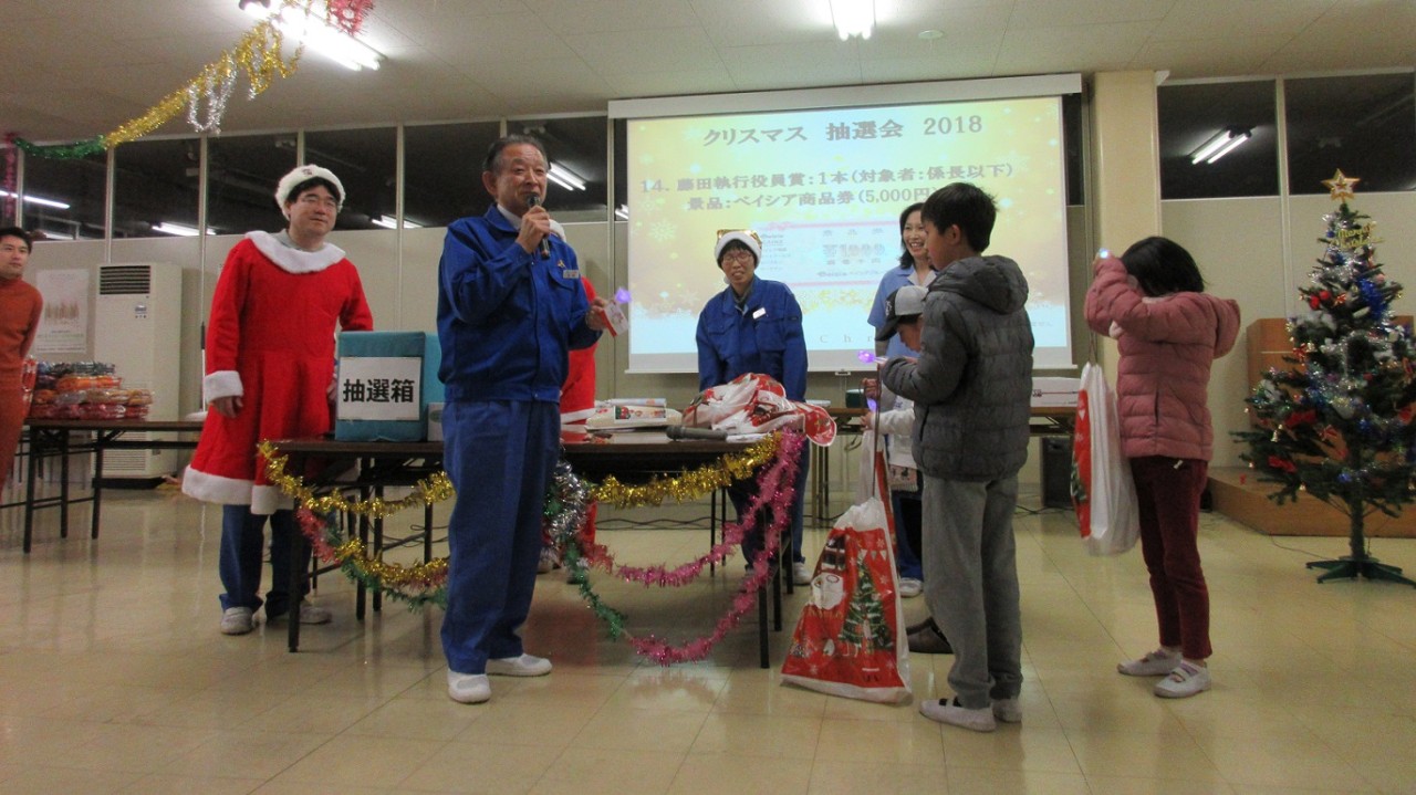 普段は殺風景な社員食堂にクリスマスの飾りつけをし、社員全員にケーキやお菓子が配られ、豪華賞品が当たる抽選会が行われました。
